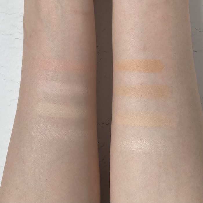 ぱっと見でも、コスメデコルテの方は明度が暗めで、アディクションは反対に白味が強いです。