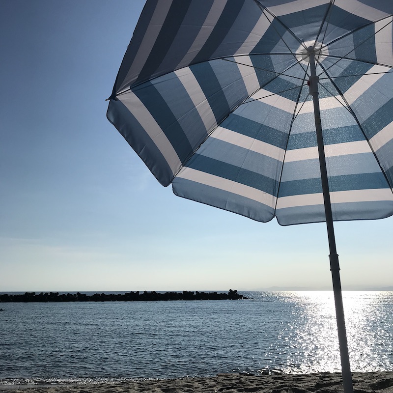 海の家は利用しないので、基本ビーチでの日陰はパラソルと簡易テントのみ。